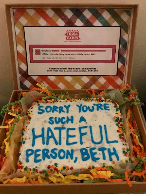Send us a troll comment and the address of whoever said it. We’ll turn the comment into a custom Troll Cake and mail it to their home or work.